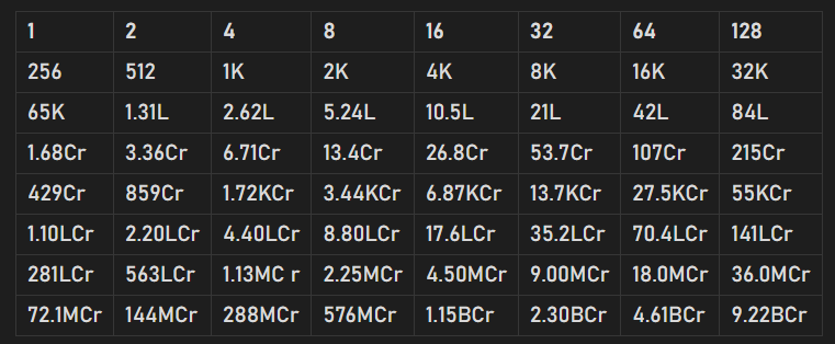 - Double it in the next square and continue till the 64th square.